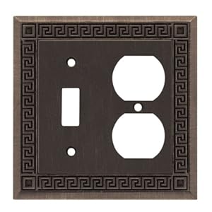 Product Description : From the ManufacturerThe Liberty Greek Key 2-Gang Brushed Oil-Rubbed Bronze Combination Wall Plate features a base material of durable die-cast zinc and a decorative design. It is UL listed for safety and houses 1 toggle switch and duplex outlet. UL listed. Product Description : The Liberty Greek Key 2-Gang Brushed Oil-Rubbed Bronze Combination Wall Plate features a base material of durable die-cast zinc and a decorative design. It is UL listed for safety and houses 1 toggle switch and duplex outlet. UL listed.