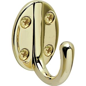 Product Description : A sturdy, unobtrusive hook for robes, coats, towels and bags in the bedroom, bathroom or entryway. Oval base with four mounting screws provides a stable connection to the wall so the screws won't work loose over time. Technical Details: Hook width: 1-3/8". Hook height: 2". Projection from wall: 1-5/8". Finish: Polished Brass. What's in the Box? (1) Polished Brass Robe Hook (4) Mounting screws, 1"
