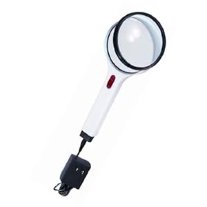 Product Description : This is a unique double lens 4" lighted magnifier/reader with transformer. The overall length is 10.5 inches. On/Off switch is on the handle. Now you can get powerful 3X or extra powerful 4X magnification with the same magnifier and read easily without having to move the magnifier back and forth. Recommended for macular degeneration. Use with batteries or with the electric plug-in adaptor. Extra bulb, power supply transformer and two "C" batteries are included.