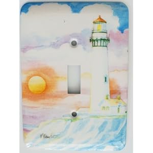 Category: Tools & Home Improvement Vendor: metal switch plate, hardware included lighthouse, sunset, clouds Product Description : Metal switch plate with screws. Features lighthouse, clouds, sunset.