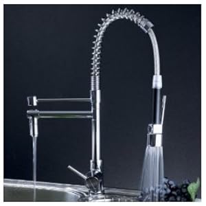 Product Description : **Special Promotion** Big Sale on this popular Kitchen Sink Faucet! Great quality and Low price, without breaking your wallet! This "Industrial-style" single handle kitchen faucet brings the look and feel of a gourmet restaurant to your home's kitchen. With the convenience and precision of single-handle control and its two models: spray and aerated steam, this pull down kitchen faucet will certainly be the workhorse of your kitchen while providing the industrial appearance of a professional kitchen. This kitchen faucet can be mounted in one-hole sinks.For three-hole sinks, you can choose a matching deck cover plate in our store to complete a coordinated look. Features :- Faucet has a heavy duty solid brass construction that weighes over 4kg- Chrome finish to create a smooth metallic look- Drip free ceramic disc cartridge for smooth and long lasting operation - 360-degree swivel spout and side mixer easily reaches anywhere in the sink- Two Modes: spray (great for heavy-duty cleaning or washing of produce) or aerated stream (ideal for general, everyday washing of hands and dishes)- Side mixer can be switched independently and used with spray spout at the same time- Standard US plumbing connections (1/2" Diameter)- The plastic protective layer around the spout ensures the faucet never becomes too hot to hold - Professionally tested at a high water pressure of 1.6Mpa to ensure the durable quality- Faucet total height: 23.68" - Spout height: 4.49 "- Spout length: 7.95 "Package Including- Single Handle Spring Pull Down Kitchen Bar Vanity Sink Faucet, Chrome - Hot & Cold Water Hoses - Installation Instruction